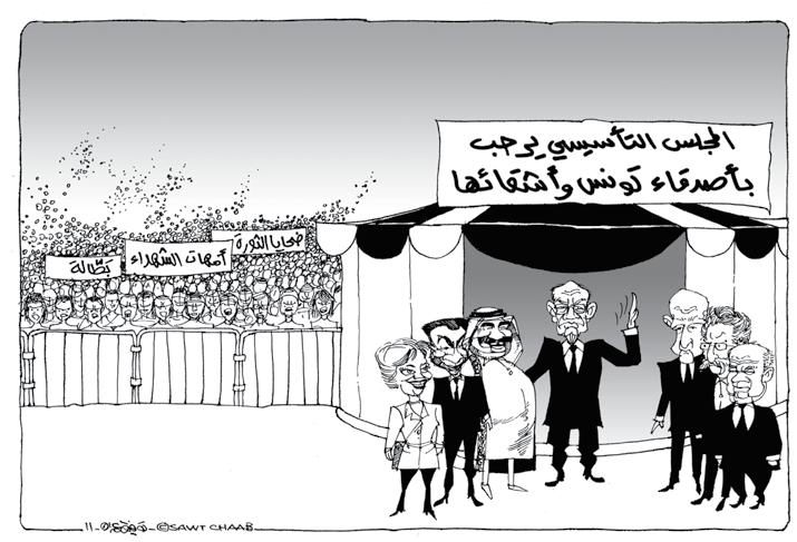 وإلى جانب أمير قطر فإن بقية الضيوف من رموز الامبريالية مثل الرئيس الفرنسي ووزيرة الخارجية الأمريكية هم أيضا غير مرغوب فيهم. وفي المقابل واعتبارا لأن هذا المجلس هو أحد نتائج ثورة الشعب التونسي الذي دفع من أجله دماء العشرات من الشهداء والجرحى، نعتبر أن الأولى بحضور جلسته الافتتاحية هم جرحى الثورة وعائلات الشهداء والمنظمات والشخصيات التي وقفت إلى جانب الشعب التونسي في كل محطات نضاله ضد الديكتاتورية إضافة إلى رموز حركات التحرر ومعاداة الامبريالية والصهيونية في العالم.